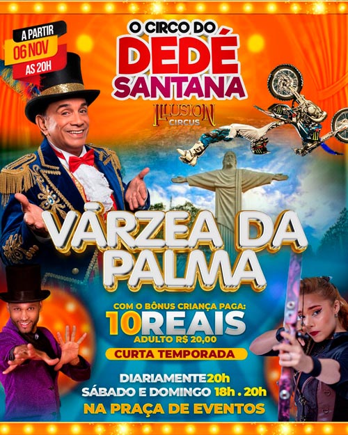 | Ingresso Illusion Circus | Várzea da Palma – MG | 08/11/2025 – Sábado 1ª Sessão | R$ 11,00 – R$ 44,00Price range: R$ 11,00 through R$ 44,00 → Incluso taxa de compra online |